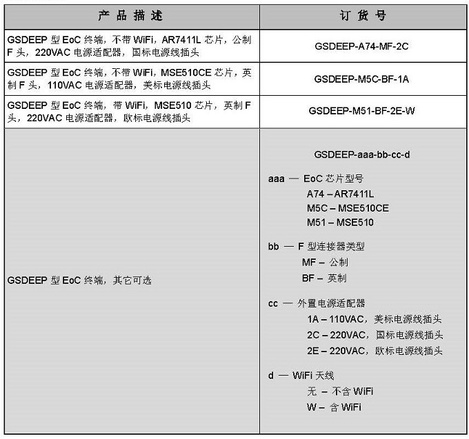 GSDEEP 配合同軸電纜以太網(wǎng)頭端設(shè)備,旨在通過有線電視用戶家中已有的同軸電 纜網(wǎng)絡在接收有線電視信號的同時可接入以太網(wǎng)數(shù)據(jù)信號。